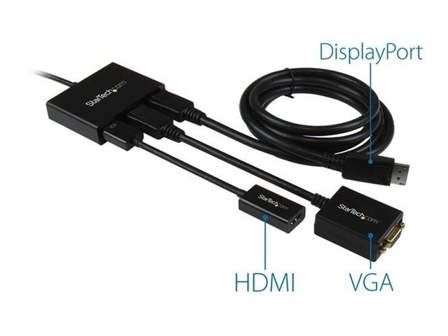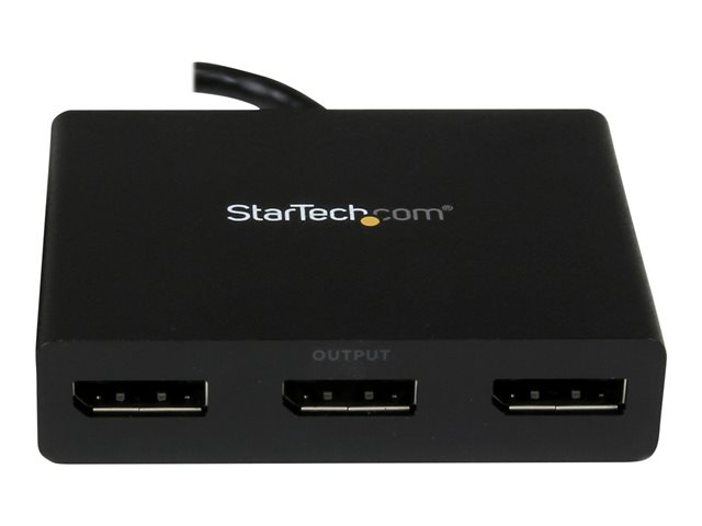 - Information This MST hub lets you connect three monitors to your DisplayPort (DP) 1.2 equipped Windows laptop or desktop. The newest generations of computers are more portable than ever, which often means that you're left with fewer video outputs and smaller integrated screens. This MST hub solves both of these problems by letting you connect three additional displays to your computer, which makes multitasking much easier. With the MST hub, you can use DisplayPort video adapters and cable adapters that enable you to connect HDMI, VGA or DVI displays. This ensures your MST hub will be compatible with virtually any television, monitor or projector. This MST hub is VESA and DisplayPort certified to support DP 1.2 enabled systems, for seamless integration with your existing video equipment. Using the MST hub, you can extend your desktop onto additional monitors and stream independent content to each display giving you the freedom to multitask and increase your productivity. You can also mirror the same image onto multiple displays for remote viewing applications such as digital signage. MST technology uses your existing video card to minimize the use of system resources while delivering Ultra HD 4K resolutions. This unprecedented performance makes MST perfect for high-resolution applications such as graphic design, gaming and medical imaging. Note: When using a DisplayPort 1.1 video card the MSTDP123DP will act as splitter, automatically mirroring your video source across all displays. Resolution limitations apply. Note: MST shares 21.6 Gbps across all attached displays. Higher resolutions can restrict the available bandwidth with the remaining ports. Certain graphics adapters have limited MST support and will only output to three displays in total. If more than three monitors are attached the fourth will be disabled.