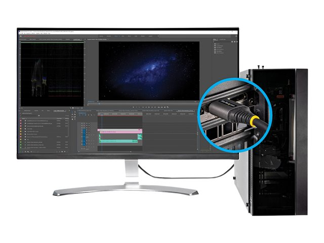 Certifierad Ultra High Speed HDMI 2.1 - 8K 60 Hz - 3 m Denna 3 m Ultra High Speed HDMI 2.1-certifierade kabel motstår de dagliga kraven för anslutning av dina HDMI-enheter. Den robusta kabeln är testad för att klara av påfrestande slitage och är ett måste för både företags- och konsumenttillämpningar. Upplev det senaste som HDMI 2.1 har att erbjuda Denna högpresterande 8K-kabel stöder upplösningar på upp till 8K vid 60 Hz (7680x4620p), 5K vid 60 Hz, 4K vid 120 Hz och bandbredder på upp till 48 Gbit/s. Den stöder dessutom HDR10+ (High Dynamic Range) samt Dolby Vision för högre kontrastförhållande och levande färger. Dessutom ger eARC (Enhanced Audio Return Channel) upp till 32 okomprimerade 5.1 och 7.1 digitala ljudkanaler för att stödja DTS-HD Master Audio , DTS:X , Dolby TrueHD och Dolby Atmos för ett högkvalitativt ljud. Senaste HDCP 2.3 krypterar och skyddar ditt video- och ljudinnehåll. Med högre upplösningar, ökade hastigheter, skarpare bilder och kristallklart ljud kan du förvänta dig en bättre videoupplevelse. Kabeln är garanterad att ge den allra bästa HDMI 8K-prestanda som finns på marknaden idag. En perfekt kabel för att skapa den ultimata hemmabion eller digitala skyltningen. Denna kabel fungerar med alla 8K-redo enheter och är även bakåtkompatibel med tidigare HDMI-specifikationer. Få överlägsna anslutningar med Ultra High Speed-certifiering Kabeln har genomgått strikta tester för överensstämmelse och är certifierad av ett HDMI-auktoriserat testcenter för att säkerställa att den stöder de funktioner som en hög bandbredd utlovar. Ett EMI-test utförs också för att se till att kabeln minimerar interferens med trådlösa signaler. Kabelns viktigaste funktioner - Aluminium-mylarfolie med flätad skärmning förbättrar EMI-skyddet - Hållbar flexibel TPE-mantel och dragavlastning (TPE är giftfritt och halogenfritt för miljömässig hållbarhet) - Isolerade ledare minskar friktionen och ger större flexibilitet Kontaktens viktigaste funktioner - Understruktur med gjuten aluminiumskärmning förbättrar signalintegriteten och förhindrar signalförsämring - Korrosionsfria guldpläterade kontakter garanterar förstklassig videokvalitet och förbättrad tillförlitlighet - Testad för att hålla för 10 000+ insättningar HDMM21V3M täcks av StarTech.coms livstidsgaranti.