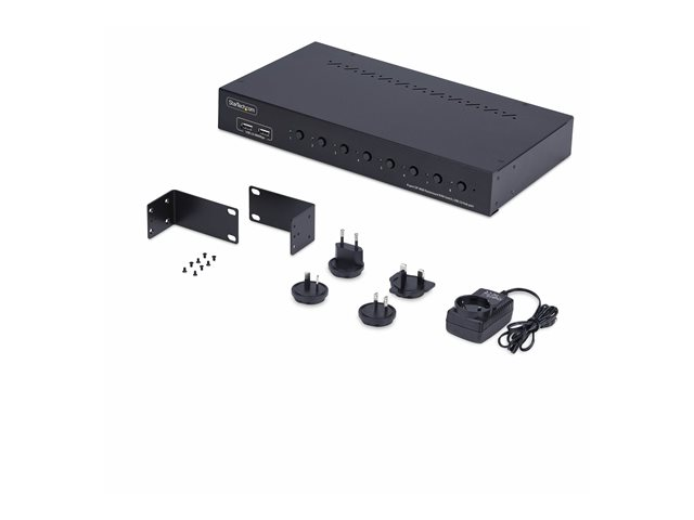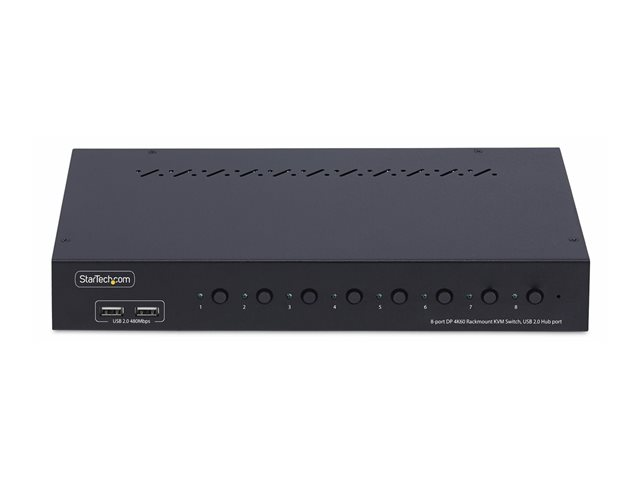 - Information 8-Port DisplayPort KVM Switch med 1U Rack Mount Kit från StarTech.com är utformad för att förenkla hanteringen av flera datorer och förbättra produktiviteten på alla arbetsplatser. Med stöd för videoupplösningar på upp till 3840 x 2160 med en uppdateringsfrekvens på 60 Hz ger den högkvalitativa bilder för olika tillämpningar. Lokala användare kan växla mellan datorer med hjälp av tryckknappar eller snabbkommandon, vilket ger en sömlös övergång utan trassliga kablar. Med ljudstöd för 5.1-kanalsljud tillgodoser den dessutom multimediabehoven, vilket gör den lämplig för både kontors- och underhållningsinställningar. Denna KVM-switch är byggd med hållbarhet i åtanke och inkluderar en rackmonteringssats för enkel integrering i din befintliga installation och upptar endast 1U utrymme. Enheten fungerar inom ett brett temperaturområde och har en MTBF (Mean Time Between Failures) på 73 003 timmar, vilket garanterar tillförlitlig prestanda. Den uppfyller standarder som FCC, RoHS och WEEE och återspeglar ett engagemang för miljöansvar, vilket gör den till ett bra val för dem som söker effektivitet och tillförlitlighet.