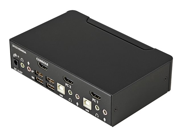 Share a keyboard, mouse and HDMI monitor between 2 multimedia computers. The SV231HDMIUA 2-port USB HDMI KVM Switch lets you control two USB-enabled multimedia computers or devices with HDMI video interfaces, using a single peripheral set/console (USB keyboard, mouse, monitor, speakers and microphone). A highly versatile KVM solution, the USB HDMI KVM Switch features an integrated 2-port USB 2.0 hub that lets selected computers access shared high speed USB devices, eliminating the cost of duplicate USB peripheral purchases. Ensuring high quality video capability, the HDMI KVM switch supports HD resolutions of up to 1920 x 1200. Offering genuine digital signal transmission over the cable, this switch can be used to share one HD panel between multiple HDMI sources such as Blu-Ray players, Video Game consoles and HD media centers. The switch also supports audio and microphone switching functions and allows you to select connected computers, USB device hub ports and audio/mic channels either simultaneously or independently using either front-panel push-buttons or keyboard hotkeys.