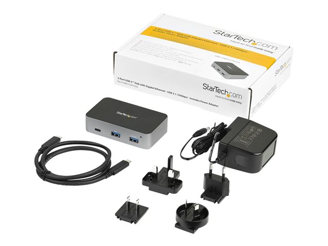 - USB3.1 Gen 2-hubben är självdriven med den universella nätadaptern