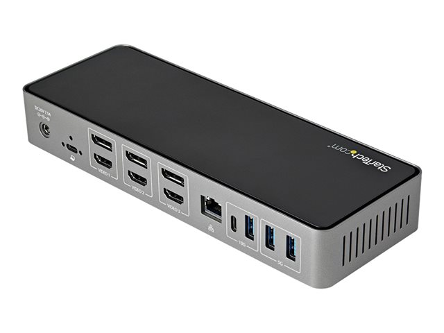 Universal hybriddockningsstation för trippla bildskärmar, DisplayPort och HDMI 4K 60 Hz - 85 W strömförsörjning, 6x USB-hubb, GbE, Ljud - USB 3.1 Gen. 2, 10 Gbit/sek - Dockningsstation - USB-C - 3 x HDMI, 3 x DP - 1GbE - 85 Watt